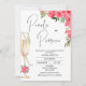 Verre de Champagne moderne Peonies rouges Perles Prosecco Douche nuptiale Invitation de perles modernes Prosecco douche nuptiale invitation avec deux peonies rouges arrangements floraux, cap de calligraphie moderne et une grande coupe de champagne avec un chapelet de perles.