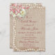 Cette belle perle de douche à marée bleue présente un arrière - plan marron vintage à la décoration rose et aux perles blanches autour de la frontière. Au milieu se trouve votre information de douche nuptiale écrite en belle police bordeaux. Personnalisez votre invitation à la douche nuptiale dès aujourd'hui ! Conception de l'invitation : WeddingsbyRhoadie Art Arrière - plan : Elena Chukovskaya