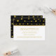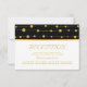 Carte de réception de mariage moderne à rayures et perles de papier d'aluminium noir et or avec un motif de ficelle avec des boules de papier d'aluminium or avec une brillance métallique sur le dessus qui ressemblent à des perles sur une corde et une rayure dorée sur fond noir et vos détails sur fond blanc. Ce design de modèle de mariage élégant et stylé est entièrement personnalisable et est parfait pour un mariage contemporain. Notez qu'IL N'Y A PAS DE VRAI PAPIER D'ALUMINIUM OR, SEULEMENT DES IMAGES IMPRIMÉES.