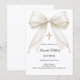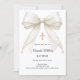 Célébrez le baptême de votre enfant avec cette élégante invitation ivoire à ruban, conçue avec un ruban de satin intemporel orné de perles délicates et d'une croix dorée classique.