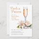 Cette invitation à la douche nuptiale présente un élégant verre de proscécco en or rose et en ambre à bulles, avec une couleur de type assortie, pour un thème perles, pétales et de proscécco. Toast à la future mariée, dans un décor charmant et compagnie chère.