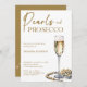 Perles et la douche de mariée de prospect élégante invitation modifiable modèle instantané téléchargement numérique, aquarelle champagne vin blanc verre et perles simple invitation minimaliste pour l'été fun nuptiale douche