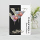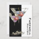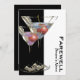 Un verre de martini branché accompagné de cerises rouges et de liqueur rose et bleue dans les verres est dressé contre un arrière - plan noir et blanc. Le libellé "adieu" et le nom de la personne apparaissent sur le devant, tandis que le dos contient des modèles de texte que vous pouvez personnaliser.