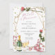 Une invitation à la douche nuptiale élégante et moderne saupoudrée de faux paillettes d'or. Des rosebuds réalistes à long tige sur un cadre d'or géométrique apportent une note moderne à une jolie invitation de la douche Petal et Prosecco. Roulé avec des pétales roses, un temps amusant et festif est promis. Envoyez une invitation qui fera plaisir à vos invités pour ce qui est en réserve dans cette douche à bulles à thème nuptiale. Mauvy rose pivoine, or et vert feuille rose.