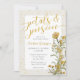 Cette invitation à porter des pétales de mariée et des poursuites présente des fleurs sauvages dans une belle palette jaune doré. Le libellé est dans un design étincelant doré et l'arrière - plan est parsemé de beaucoup d'étincelants dorés.