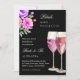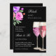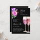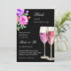 Personnalisez cette exquise invitation "Pétales et Fête des mariées du Procureur", parfaite pour célébrer la future mariée dans le style. Ce design élégant présente des fleurs d'aquarelle délicates dans des tons rose, lilas et tourbières de pêche, tandis que le Prosecco rose pétillant remplit d'élégantes flûtes de champagne, ajoutant une touche de sophistication festive à cet invitation. Contre un arrière - plan noir, les fleurs vibrantes et les boissons pétillantes se démarquent, ce qui en fait un choix vraiment étonnant et chic pour votre Bright Floral Fête des mariées Party.