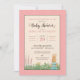 Invitation toute votre famille et des amis à votre baby shower à thème Peter Rabbit avec ces invitations à point pois rose doux.