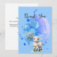 Envoyez un mot sincère d'appréciation avec cette élégante carte de remerciement plate 5x7, faisant partie de notre collection de baby shower Sweet Little Lamb. Avec un agneau à l'aquarelle douce entouré d'hydrangeas bleues délicates et de ballons pastel, cette carte ajoute une touche douce et attentionnée à votre gratitude.
