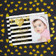 Célébrez dans le style avec ces super tendance feuille d'or amour coeurs "petite amoureuse" invitations d'anniversaire. Le design est composé d'un arrière - plan rayé noir et blanc moderne avec effet feuille d'or, les coeurs d'amour et le libellé de typographie correspondant. Parfait pour tous ceux qui ont un anniversaire le jour de Valentin ou aux alentours.