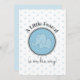 Petit éléphant d'arachide bleu Simple bébé garçon douche Invitation — bleu, les pois sont l'arrière - plan d'un éléphant blanc doux dans un grand cercle bleu. "Un peu d'arachide est en route" est le titre. L'arrière-plan comprend toutes les informations pertinentes sur le baby shower.