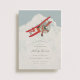 Préparez-vous à prendre l'avion avec cette invitation baby shower de style vintage ! Contre un arrière - plan bleu clair, un adorable petit avion rouge s'envole au-dessus des nuages. Avec son charme dessiné à la main, ce petit avion saura capter le coeur de vos invités et donner le ton pour un baby shower amusant et aventureux. Les couleurs sont douces et capricieuses, les tons bleus, rouges et crème ajoutent au charme de l'ensemble. Avec son illustration ludique et son design d'inspiration vintage, cette invitation baby shower saura ravir vos invités et les préparer au décollage. Alors montez et préparez-vous à fêter l'arrivée de votre petit en style !