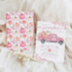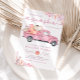 Invitation citrouille baby shower avec un pick-up rose, citrouilles, et feuillage d'automne