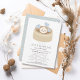 Ce garçon mignon et kawaii "leur petite bouchée sur le chemin" baby shower par l'invitation par la poste présente une bouchée avec un visage souriant et des coeurs bleus dans un vapeur chinois sur un arrière - plan blanc. L'envers est composé d'un arrière - plan blanc avec des motifs gris. Modifiez la couleur arrière - plan à la fois sur le devant et sur le dos et personnalisez-la selon vos besoins.
