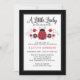 Un petit coccinelle est en route ! Une mignonne invitation de baby shower de coccinelle rouge et noire. Le fond de l'invitation est décoré d'un joli motif floral rouge, noir et blanc. Personnalisez-le pour votre baby shower fille. Conçu pour vous par Blackberry Boulevard.