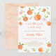 Cette adorable invitation présente pêches peintes à la main, fleurs et verdure.