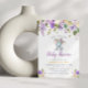 Invitation petit baby shower fleuri violet d'éléphant
