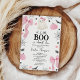 Moderne Bow Boo Little Boo Presque due Baby shower Invitation Sweet baby girl's Halloween invitation baby shower thématique avec quelques fantômes, citrouilles, chauves-souris, arcs roses, feuillage et toiles d'araignée. Ce petit garçon est presque dû invitation baby shower est idéal pour un baby shower d'octobre pour une petite fille.