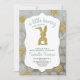 Une merveilleuse invitation rustique à la gloire du bleu et de l'or pour un Petit Lapin en route !