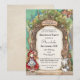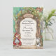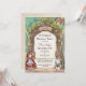 Cette invitation personnalisée colorée et enchanteresse présente un thème de conte de fées Little Red Riding Hood. Une entrée dans les bois est photographiée sur le devant avec la maison de grand-mère dans l'arrière - plan. Le petit chaperon rouge et le grand méchant loup sont de part et d'autre de l'image de la forêt. Le centre présente un design de parchemin défraîchi avec une police de conte de fées qui ressemble à un vieux livre.