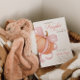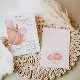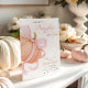 Une douce invitation à la douche pour bébé avec un citrouille pastel doux surmonté d'un arc de coquette rose. Conçu avec une calligraphie élégante et un agencement minimaliste pour une fête chic d'automne.