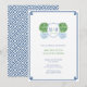 Ce design intelligent bleu, blanc et vert présente un monogramme de couple avec une boule de buis en pot en forme de jarre gingembre de chaque côté. Il est entouré d'une bordure "clé grecque" et au verso se trouve un fond à motif "clé grecque". J'ai configuré le modèle pour un brunch de jeunes mariés, mais tous les champs de texte sont personnalisables selon vos besoins. Au verso, vous pouvez changer la couleur de contraste (ici un bleu foncé) par la couleur de votre choix en accédant à l'outil de conception (sous la zone de personnalisation du texte, cliquez sur "personnaliser davantage"), puis en changeant la couleur de fond au verso.