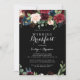 Cette invitation rustique au petit-déjeuner botanique mariage noir est parfaite pour une famille et des amis classiques, après le petit-déjeuner du mariage. Le design est composé de fleurs bordeaux, rouges, navy, bleues et rousses rayonnantes et gracieuses peintes à la main dans un arrière - plan noir, inspirant beauté naturelle.