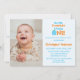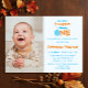 Photo moderne petit garçon citrouille 1er anniversaire invitation. L'Arrière - plan est bleu mais peut être customisé à une couleur de votre choix. Crédit photo modèle via Pixabay sous licence CC0 et doit être remplacé par votre propre photo