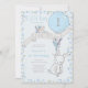 Un petit lapin tourne un .. ou personnaliser pour n'importe quel âge! Le design est encadré de fleurs bleues et comprend un petit lapin sucré avec un petit bouquet et un ballon bleu portant une bannière, écrit avec une fête d'anniversaire, et décoré d'un petit oiseau. Cette mignonne invitation a une douce pallette bleue couleur et l'arrière de l'invitation a le même motif floral fantaisiste. Parfait pour une fête d'anniversaire de printemps, d'été, de pâques ou de lapin.