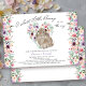 Petits lapins de lapin à saupoudrer invitation avec un lapin lapin d'aquarelle et coeur floral. Le design est écrit en écriture manuscrite avec le titre "A Sweet Little Bunny est sur le chemin" et a de jolies bordures de fleurs dans les tons rose, pêche et lilas. L'adorable lapin à oreille de disquette est encadré d'un coeur d'amour composé des mêmes fleurs. Si vous voulez ce design pour les produits correspondants, s'il vous plaît envoyez-moi un message.