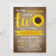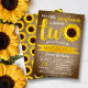 Ces jolies invitations au tournesol sont parfaites pour tous ceux qui célèbrent un deuxième anniversaire ce printemps ou cet été. Le design comprend un tournesol brillant sur un arrière - plan de burlap rustique avec un libellé modèle facile à personnaliser.