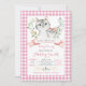 en vichy rose sucrée invitation au baby shower de chatte Kitty, invitation au baby shower d'amoureux des chats Kitty