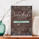 Brrr ! Des invitations chic givrées pour des baby showers d'hiver neutres selon le sexe sont accompagnées d'une bordure blanche de flocon de neige sur un arrière - plan rustique en planque de bois avec des accents vert menthe d'aquarelle. "Un petit flocon de neige est en route" apparaît en haut dans le script chic de calligraphie blanche. Personnalisez avec vos détails de baby shower sous les champs modèle.