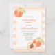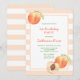 L'invitation Anniversaire de enfant présente des pêches à l'aquarelle mignonne sur des bandes de couleur pêche arrière - plan.