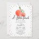Cette mignonne invitation de baby shower virtuel/zoom/en ligne fille présente un arrière - plan blanc avec une paire de pêches en aquarelle encadrée par des points aléatoires en faux or bronze. L'envers est doté d'un arrière - plan rose clair avec des points aléatoires. Personnalisez-vous pour répondre à vos besoins. Vous pouvez trouver d'autres produits correspondants dans mon magasin.