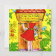 Un classique de cru avec peu de capuchon rouge sur l'avant, portant son panier de goodie comme elle frappe à la porte de cottage de grands-mères et est entourée par des fleurs. Sur le dos elle la montre arrivant aux grand-mamans cottage et est saluée par tous les animaux dans la forêt comprenant un écureuil mignon et un oiseau bleu. Grand pour toute célébration d'anniversaire !