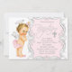 Invitations de baptême Girls Angel avec joli arrière - plan tourbillon rose et argent et adorable invitation de baptême de bébé ange ange. Cette invitation au baptême de petite fille d'ange rose mignon est facilement customisée pour votre événement en ajoutant les détails de votre événement, le style de police, la taille et la couleur de police et le libellé. Vous pouvez déplacer la croix au besoin, ainsi que le texte de baptême.