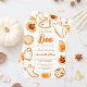 Un petit livre est presque attendu ! Célébrez votre baby shower cet Halloween avec cette jolie aquarelle peinte à la main de petits cookies avec fantômes, citrouilles, toile d'araignée, maïs et Boo illustration de cookies en blanc, orange et beige avec une police de script moderne cool et un adorable motif de cookies Halloween à l'arrière. Baby shower parfait sans distinction de genre.