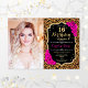 Empreinte de léopard 16ème anniversaire invitation de fête avec votre photo. Caractéristiques guépard motif, police de script, roses fuchsia et confetti. Design noir blanc rose avec parties scintillant d'or. Idéal pour une fête élégante de l'anniversaire sweet sixteen poster de animal.