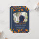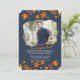 Une invitation photo frappante avec un fond bleu marine avec des feuilles tombantes dorées et orange. La fenêtre photo est une forme de polygone unique. (<a href="https://www.freepik.com/free-photo/content-handsome-traveler-sitting-on-flowerbed_1147786.htm">Conçu par Katemangostar</a>). (<a href='https://www.freepik.com/free-vector/stylish-autumn-sale-background-with-falling-leaves_2749447.htm'>Conçu par Starline</a>). <br/><br/>La carte est facile à personnaliser avec votre texte, police et couleur de police.<br/><br/>Pas exactement ce que vous recherchez ? Tous nos produits peuvent être personnalisés pour répondre à vos besoins sans frais supplémentaires.<br/><br/>Contactez-nous simplement à askcottonlamb@gmail.com.<br/><br/>Produits coordonnés disponibles : demandez-nous !