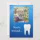 Ajoutez votre photo à cette invitation pour une première fête de dents pour un bébé ou pour toute occasion liée à l'art dentaire. arrière - plan aquatique bleu contemporain et relaxant et logo blanc brillant pour dents font une déclaration professionnelle. Couleurs de bleu foncé et clair avec texte de script blanc. Cuspid, Bicuspid ou Molar, dentiste moderne ou carte de visite dentaire associé et en-tête de papier correspondant ainsi que des publicités, des magnets et plus!