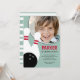 Photo Boy Bowling Birthday Party Invitation présente une photo de l'enfant d'anniversaire, ainsi que de jolies illustrations de bowling.