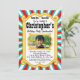 Ajoutez l'invitation photo pour enfants d'anniversaire ! Panneau de signalisation lumineux et coloré avec fausse bordure d'ampoule. Une invitation amusante au Carnaval de cirque pour un thème Big Top en rouge, jaune et bleu turquoise.