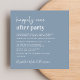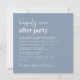 Invitation à la réception de mariage carré bleu poussiéreux avec "Happily Ever After Party" dans un script blanc contemporain et des lettres blanches modernes et audacieuses, votre invitation personnalisée et vos noms dans un script signature. Le verso présente votre photo superposée avec vos noms et date(s) réunis par un coeur (si vos dates de mariage et de réception sont différentes, gardez vos prénoms sur la ligne supérieure et vos deux dates séparées par le coeur sur une deuxième ligne).