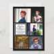 Premier nom monogramme élégant avec un montage photocollage de photos de portraits supérieurs en orientation verticale et horizontale rectangle. Faire-part de graduation recto-verso de couleur superbe avec un assortiment de photos de diplômé pour capturer et captiver amis et famille. Arrière - plan noir