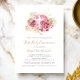 Cette élégante première invitation à la communion présente une croix blanche sur un arrière - plan de fleurs roses et déclenchée par un délicat faux feuille d'or et feuillage de parties scintillant. Le texte personnalisable combine écriture manuscrite de couleur or et police de cuivre gris fusain sur un arrière - plan blanc. Remplacez facilement l'exemple d'image au dos par une photo verticale de l'invité d'honneur.