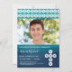 Cette invitation à la photo de confirmation personnalisée présente un arrière - plan bleu et turquoise à l'ombre d'aquarelle et une croix géométrique blanche. Un motif géométrique correspondant encadre le haut de cette invitation personnalisée. Cet invitation peut être customisé pour le sacrement religieux spécial de votre fils - changer l'image, et le texte à votre goût. Une belle et facile façon pour les invités invitations à l'événement sacramentel chrétien de votre enfant.