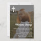 Invitation à la célébration de la vie avec une photo de votre être aimé avec une combinaison de polices modernes et rétro et une croix blanche. Votre photo a une superposition plus foncée pour faire apparaître le texte. Cette croix blanche et cette police de caractères, accompagnées d'une photo chère de votre être cher, est une belle et respectueuse façon d'aller à leurs funérailles avec des amis invitations et leur famille. Cette invitation funéraire chrétienne neutre convient à un service funéraire ou commémoratif pour n'importe quel genre.