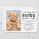 Invitation photo moderne, tendance, simple animal de compagnie fête d'anniversaire. Le design comporte une photo unique de l'animal, un script de typographie appelant tous les animaux de la fête et les détails de la fête.