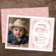 Invités Invitations à un rotin’ tootin’ bonne période avec cette invitation photo d’anniversaire de cow-girl rose "First Rodeo"! Doté d’un design occidental ludique, de tons roses doux et poussiéreux et d’espace pour la photo de votre enfant et les détails de la fête, cet invitation personnalisé est parfait pour la célébration du 1er anniversaire de votre petite fille. Une façon élégante de donner le ton pour une fête occidentale amusante !