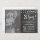Invitation pour le 3e anniversaire de mariage avec photo personnalisée. Fond de tableau noir. Lumières de chaîne. Noir et blanc. 1er, 2e, 3e, 4e, 5e, 10e, 15e, 20e, 25e, 30e, 35e, 40e, 45e, 50e, 55e, 60e, 65e, 70e, 75e, 80e, Toutes les années. Anniversaire adulte. Fête d'anniversaire pour homme ou femme. Pour une personnalisation supplémentaire, veuillez cliquer sur le bouton "Personnaliser" et utiliser notre outil de conception pour modifier ce modèle.